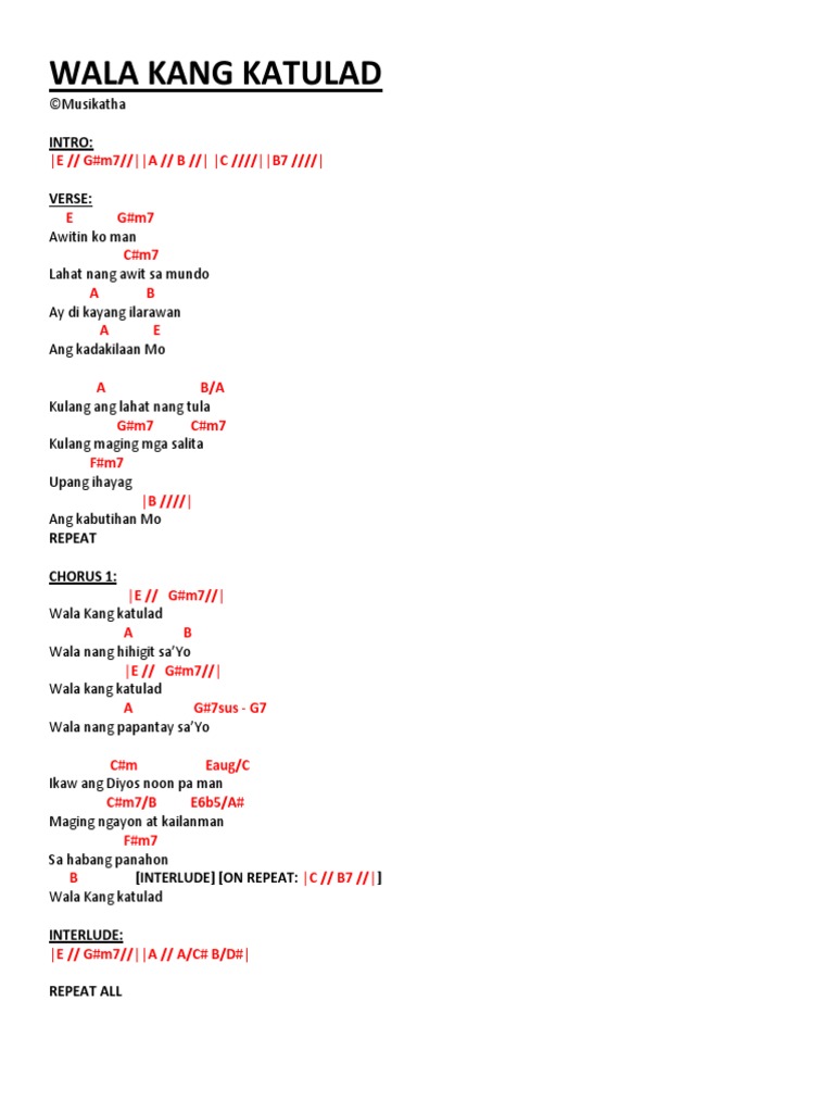 Walang katulad chords walang katulad victory worship chords walang katulad lyrics and chords Download button is at the bottom. By MP Music 2017 with capo transposer play along with guitar piano ukulele. O aming Di D yos makapangya G rihan sa lahat Di nagba Fm bago Iyong bi G yaya ay sapat Dakila Fm ka O Diyos wala Kang katu Bm lad Lagi kang Em nandiyan Ikay laging t A apat.
