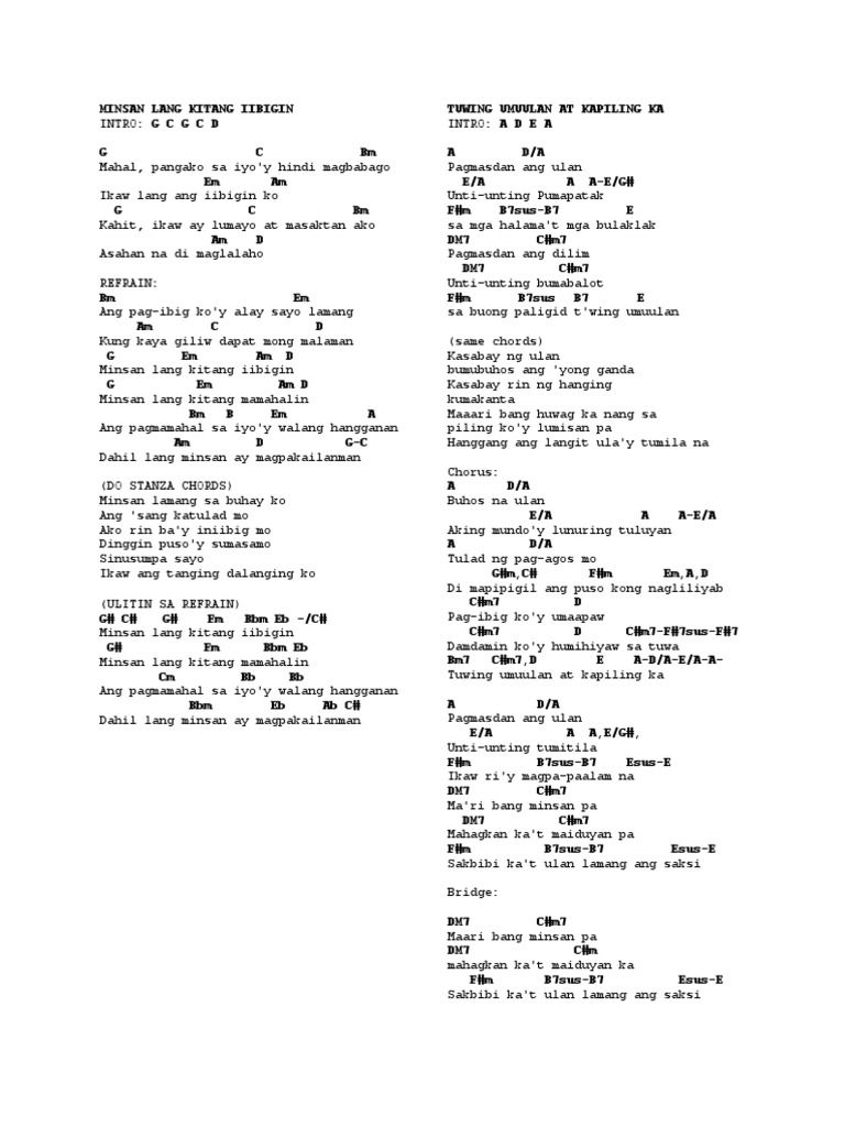 This product was created by a member of SMP Press our global community of independent composers arrangers and songwriters. A A D Cm E Fm Bm C Chords for Minsan Lang Kitang Iibigin - Ariel Rivera KAYE CAL Acoustic Cover with capo transposer play along with guitar piano ukulele. 2232011 A roster of the hottest Kapamilya artists will also have a special part in the series.
