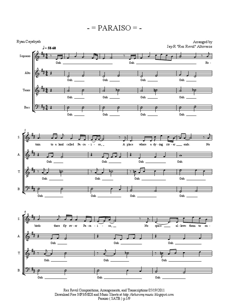 Paraiso Ryan Cayabyab Satb Arrangement By Rex Revol Pitch Music Musical Notation