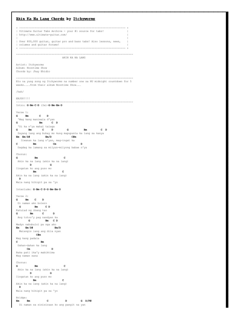 Chord Akin Ka Na Lang Itchyworms Tab Song Lyric Sheet Guitar Ukulele Chords Vip