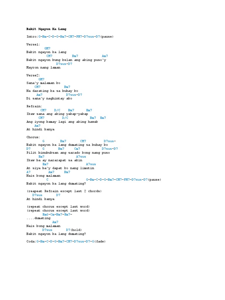 Chord Bakit Ngayon Ka Lang Ogie Alcasid Tab Song Lyric Sheet Guitar Ukulele Chords Vip