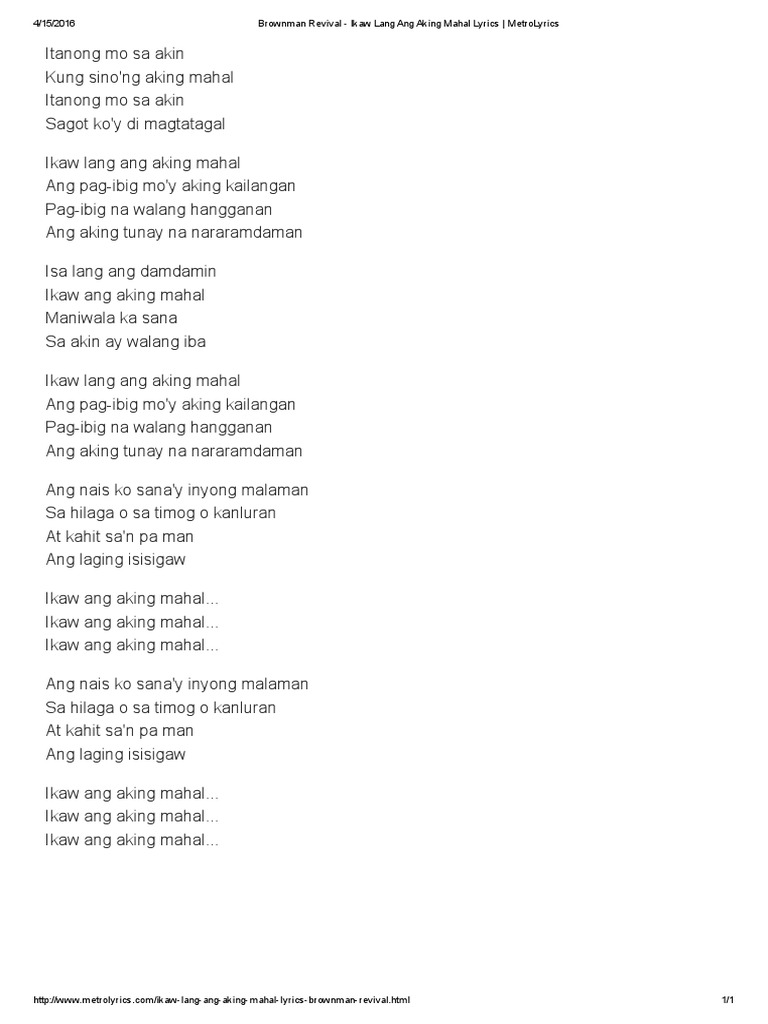 Brownman Revival Ikaw Lang Ang Aking Mahal Lyrics Metrolyrics
