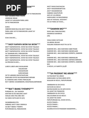 Choose one of the browsed Para Lang Sayo Panginoon Lahat Ay Gagawin Lyrics lyrics get the lyrics and watch the video. Get known every word of your favorite song or start your own karaoke party tonight -. Ang Buhay ko ay Para sayo Gamitin mo sa kaluwalhatian mo Chorus.