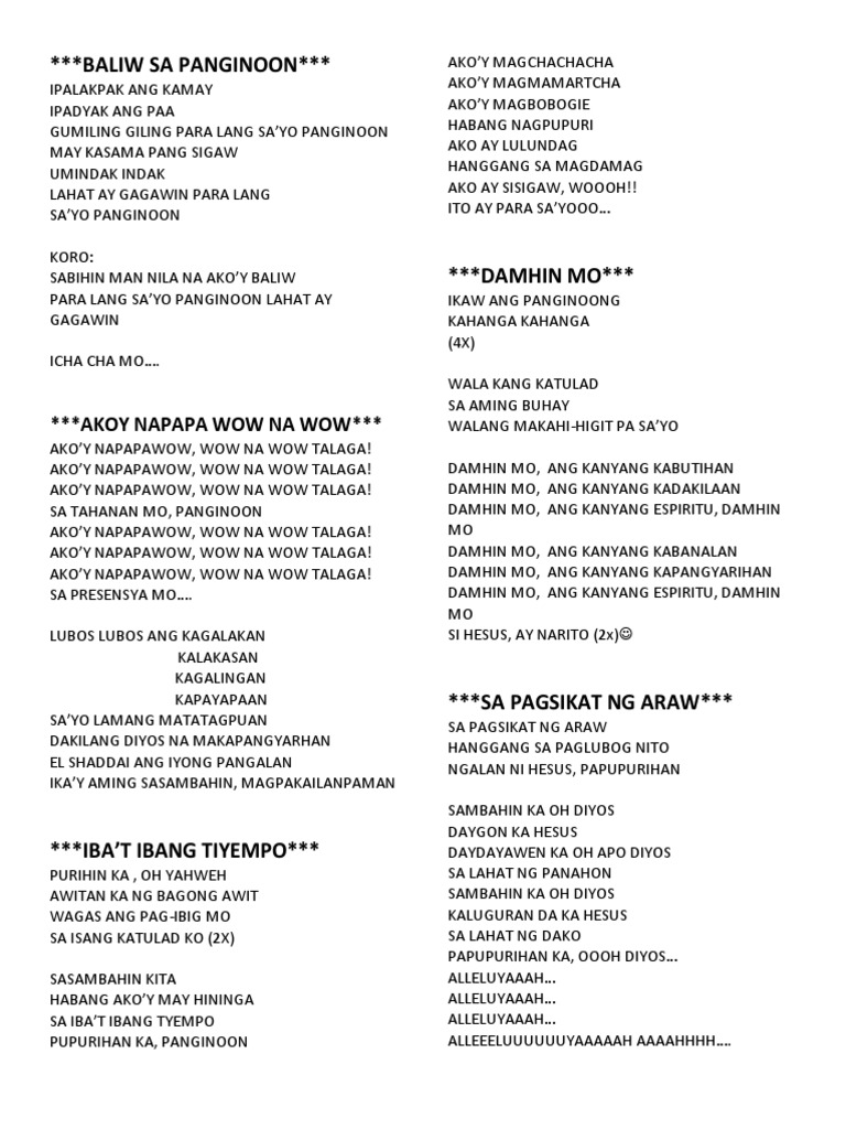 Get lyrics of Para lang sayo panginoon lahat ay gagawin lyrics song you love. At lahat lahat ng toy nagawa koh para sa iyo at ikaw ang dahilan kaya akoy nagsusumamo. Hindi magbabago pinapangako ko na para sayo Lahat ay gagawin Langit ay aabutin Wala nang maihahambing sa pag-ibig kong para.
