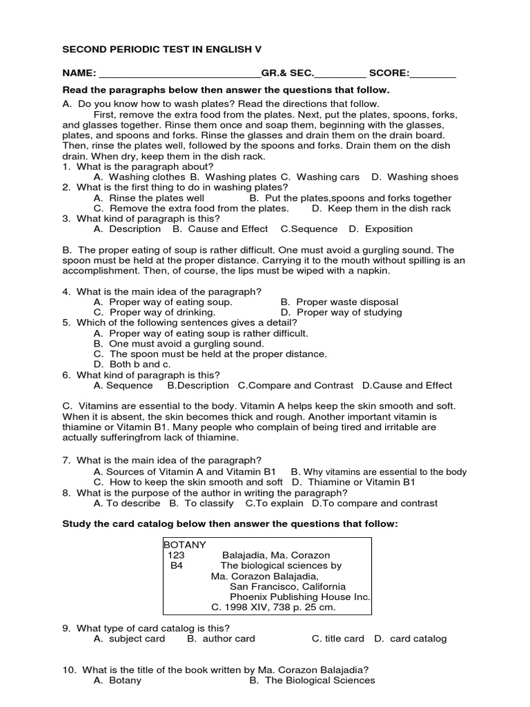 Second Periodic Test In English V Pollination Flowers